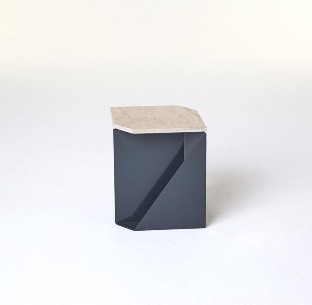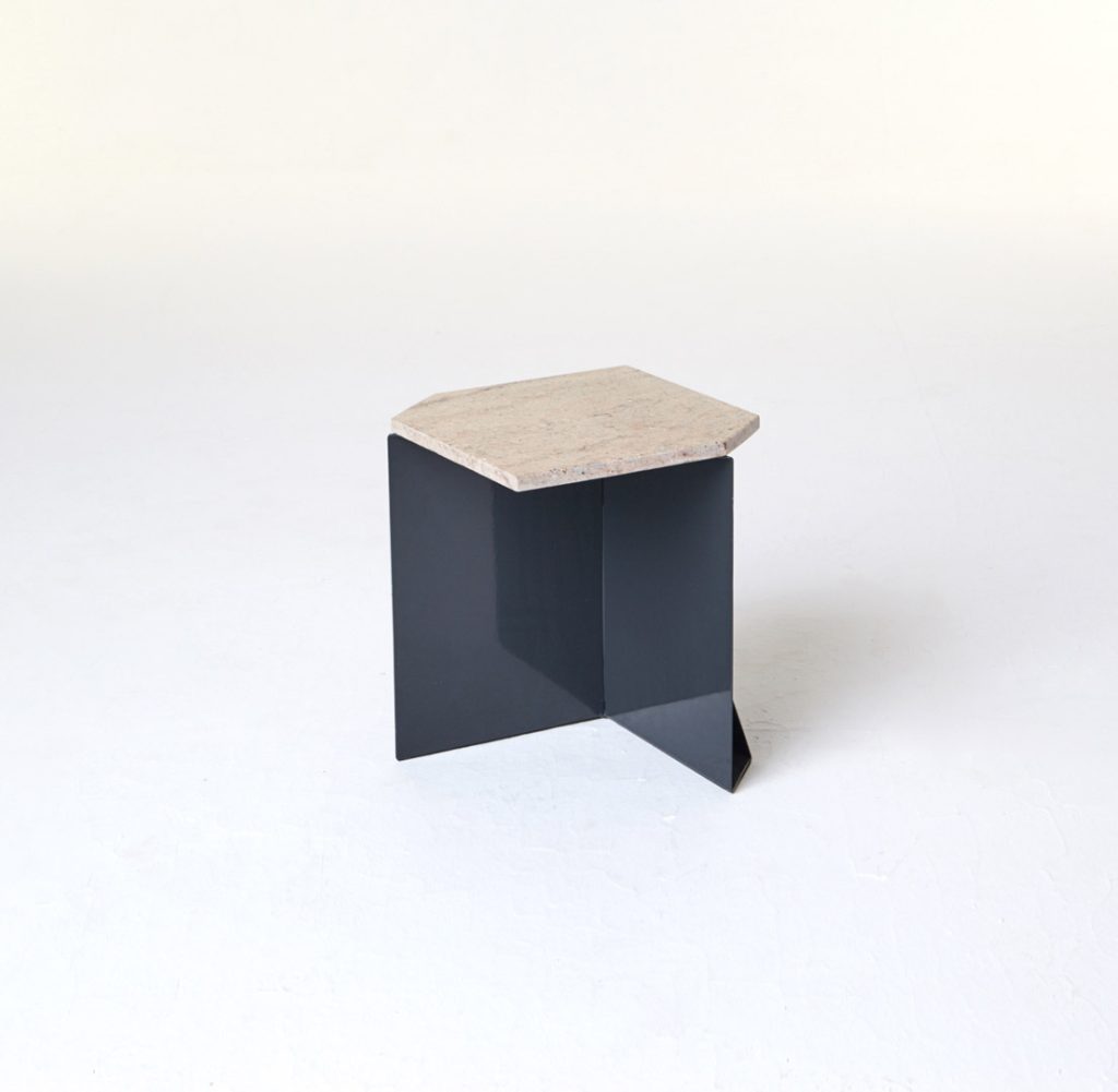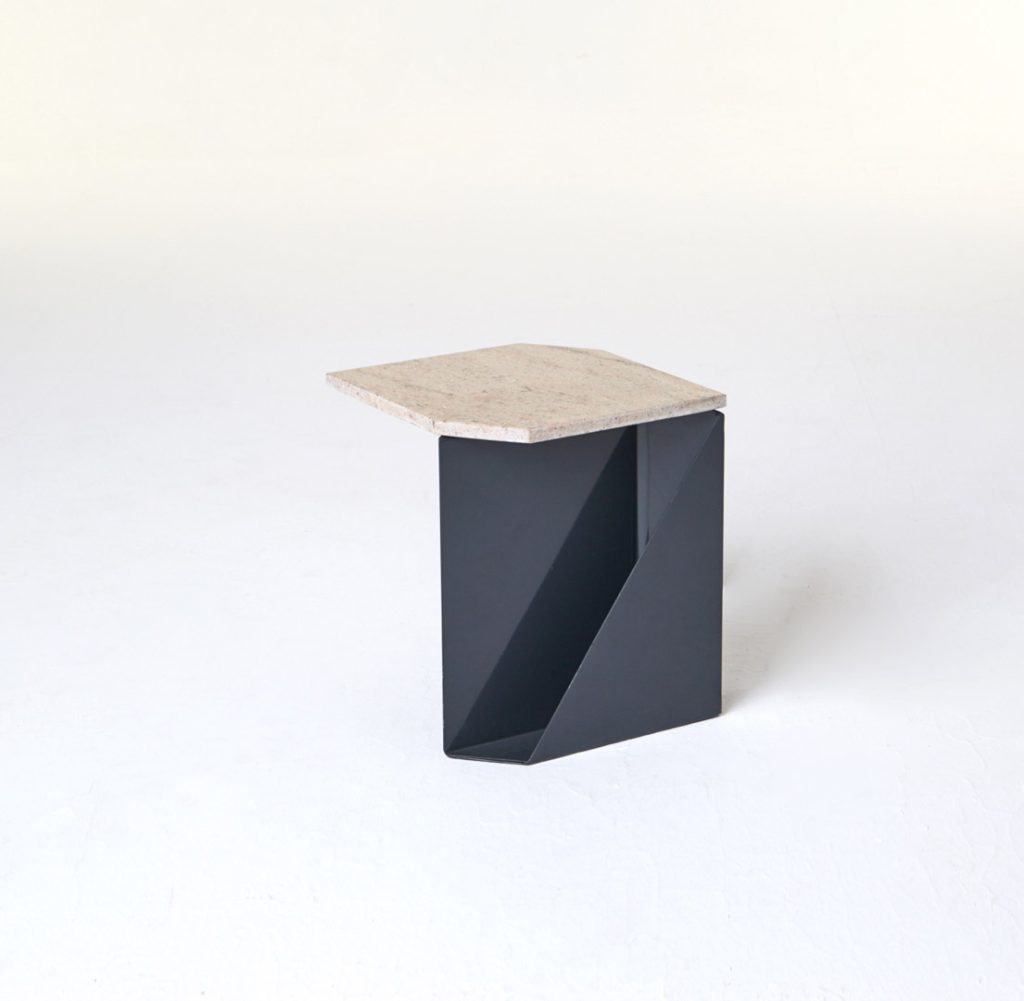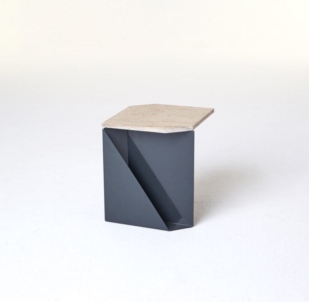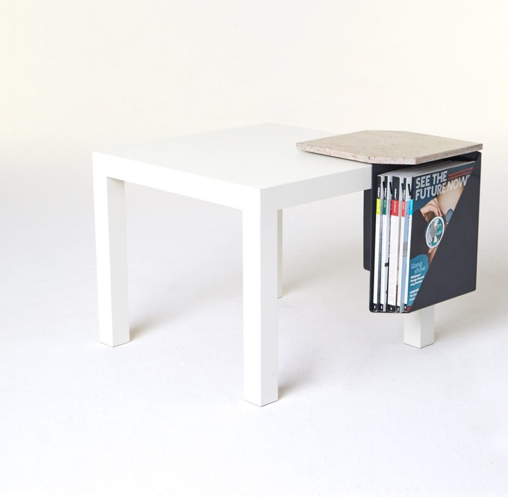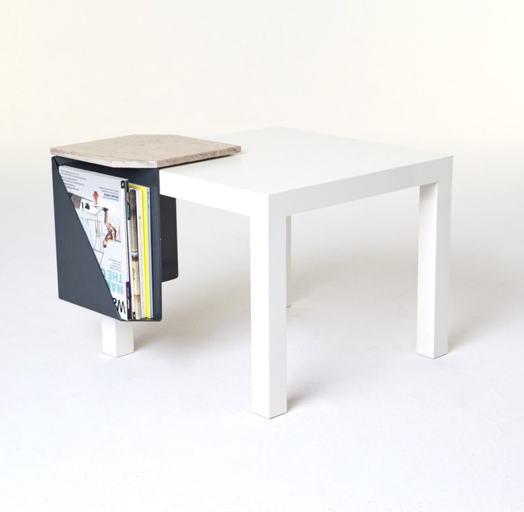 The magazine table is made from thin steel and stone, which can function both as a stand-alone or as an element of a different piece of furniture, thus managing to economise on space. Polypore may also employ the presence of other objects – through attachment – for its own function within a given space. On other occasions, it may constitute an autonomous piece of furniture, occupying its own place within the flat.
