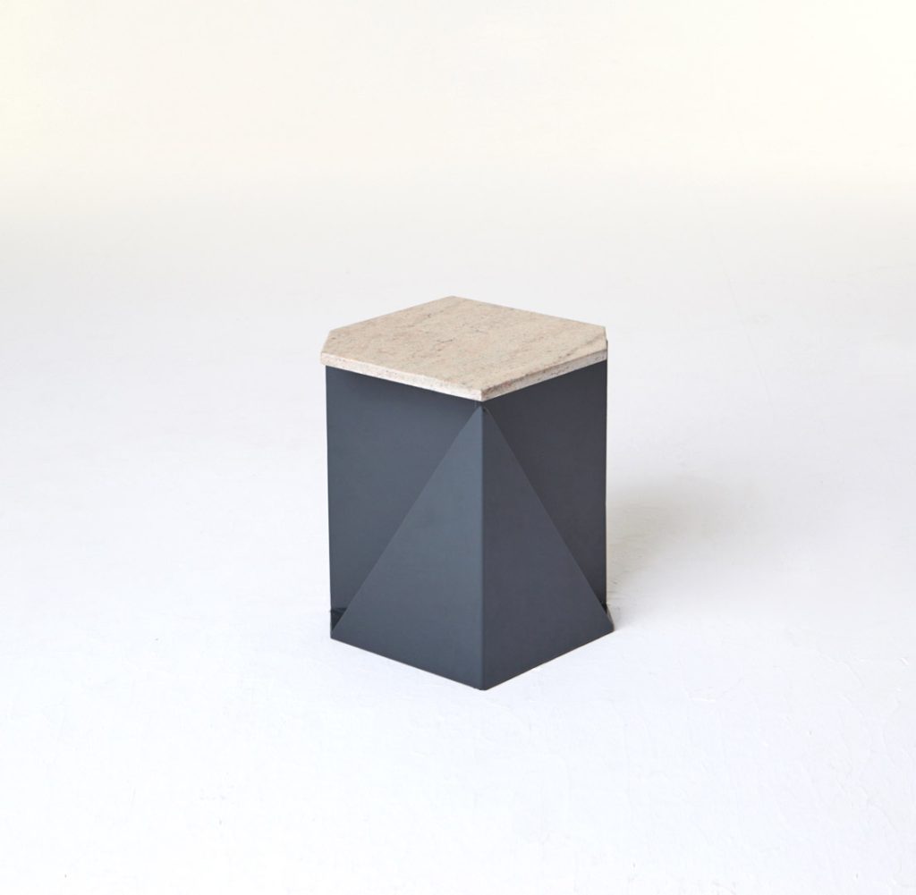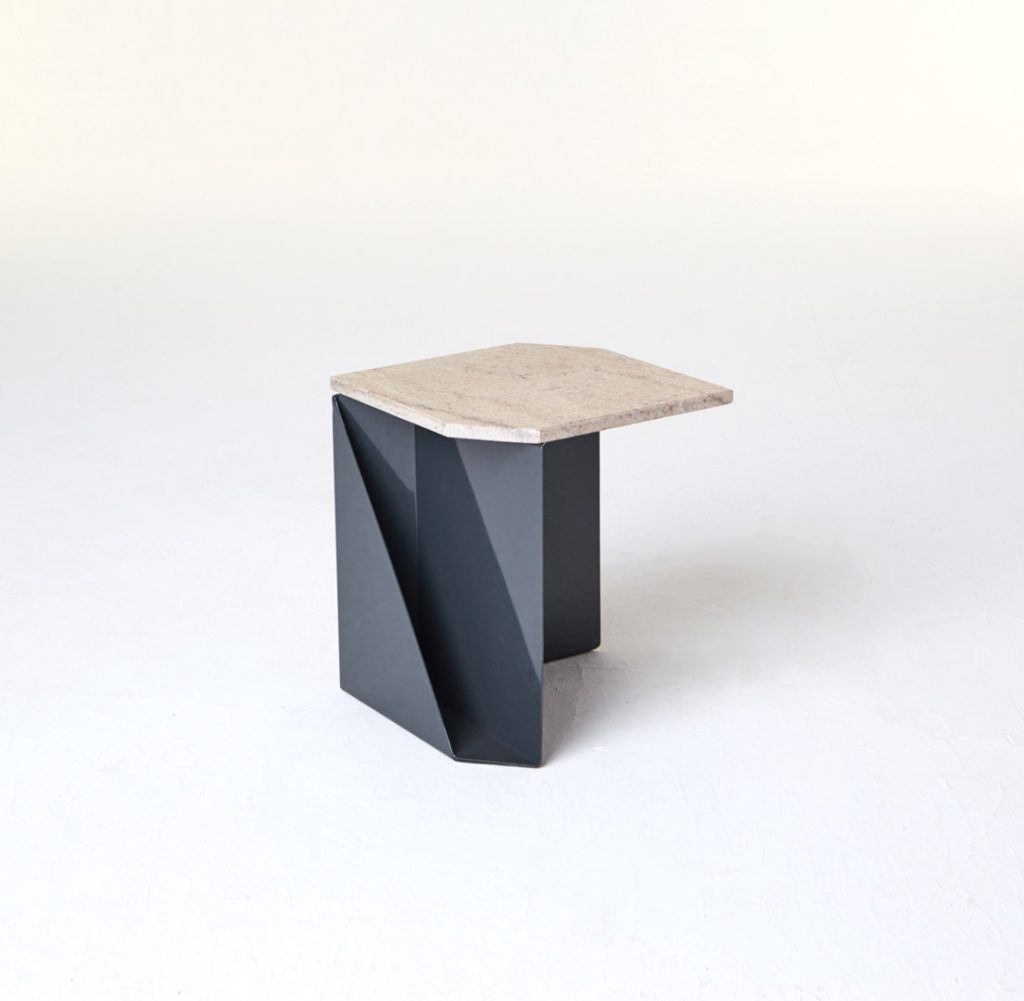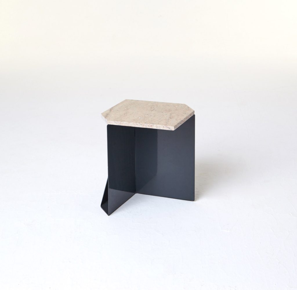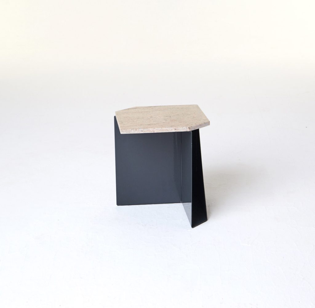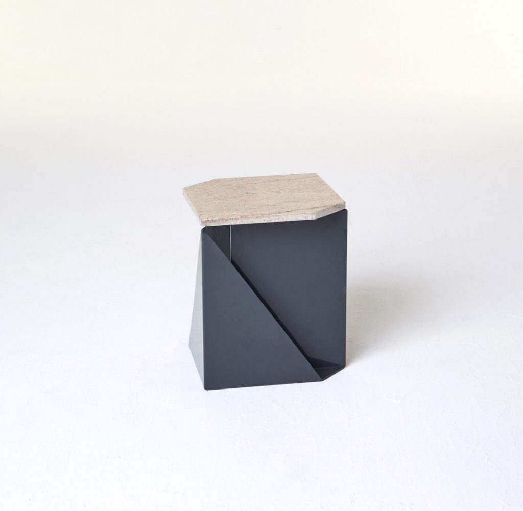 The magazine table is made from thin steel and stone, which can function both as a stand-alone or as an element of a different piece of furniture, thus managing to economise on space. Polypore may also employ the presence of other objects – through attachment – for its own function within a given space. On other occasions, it may constitute an autonomous piece of furniture, occupying its own place within the flat.