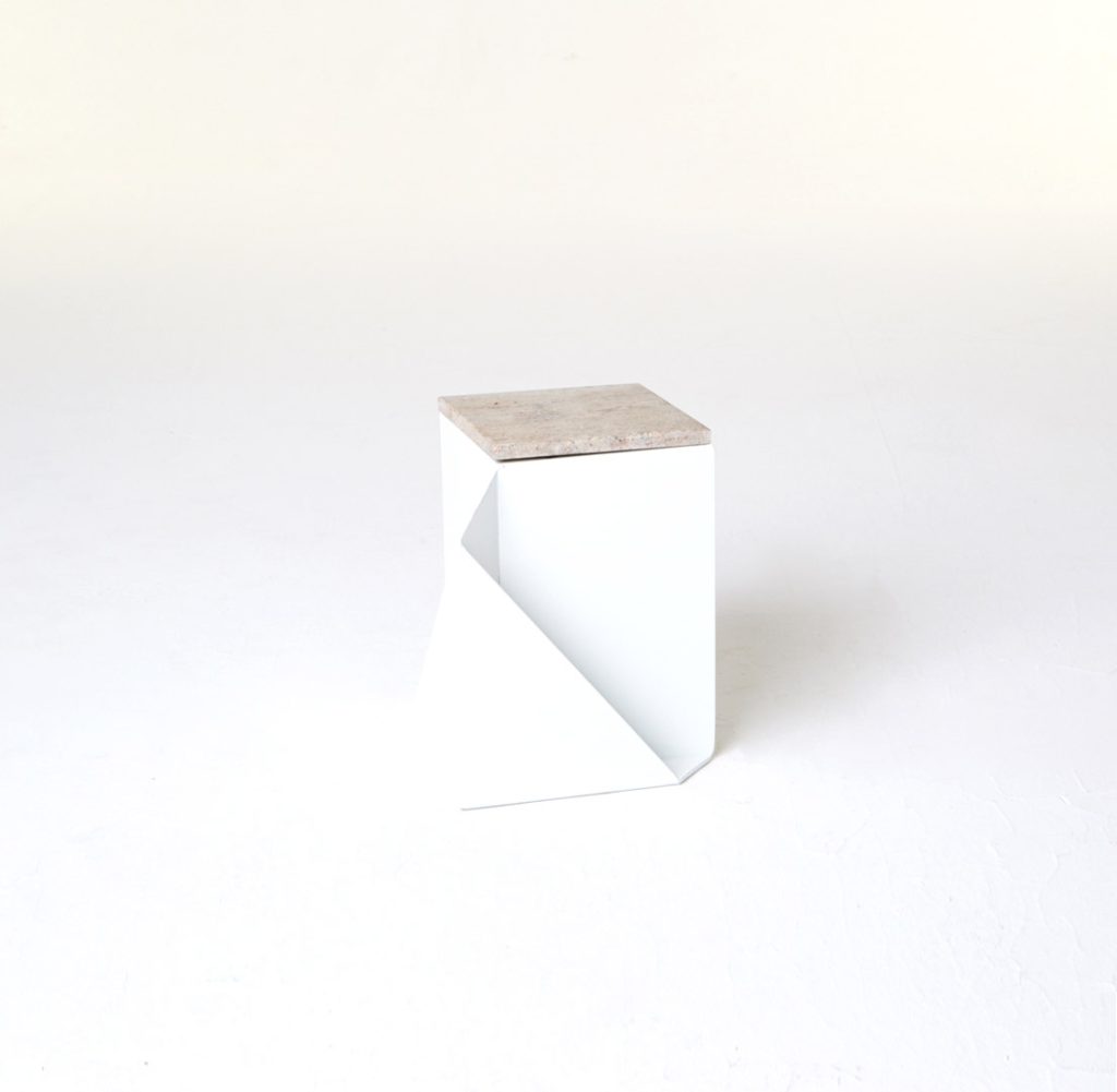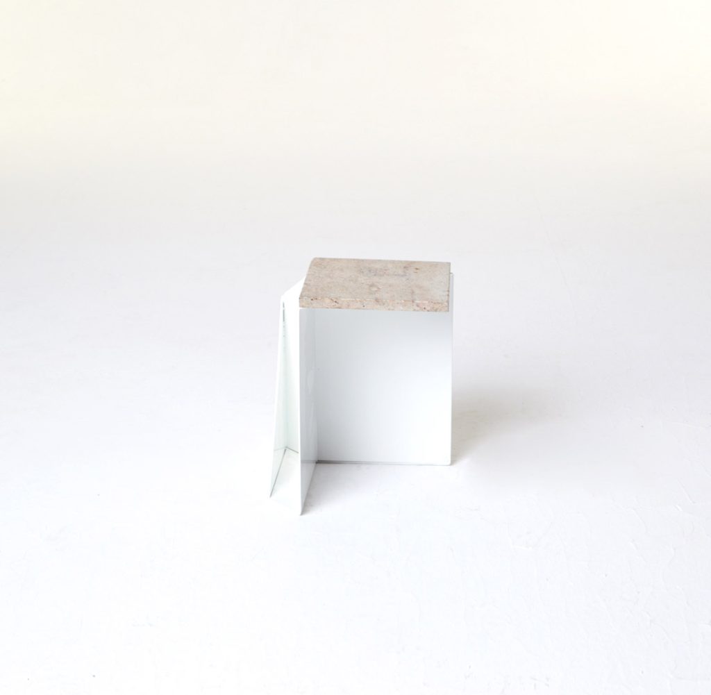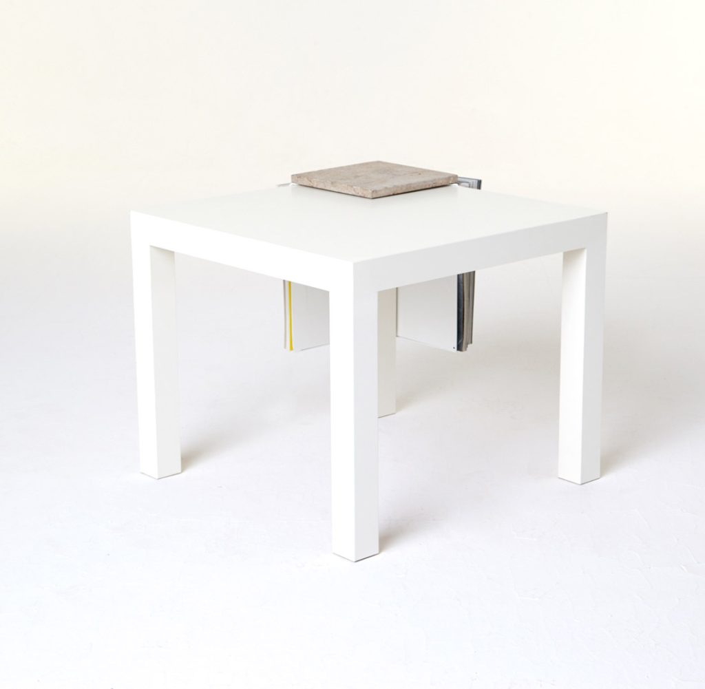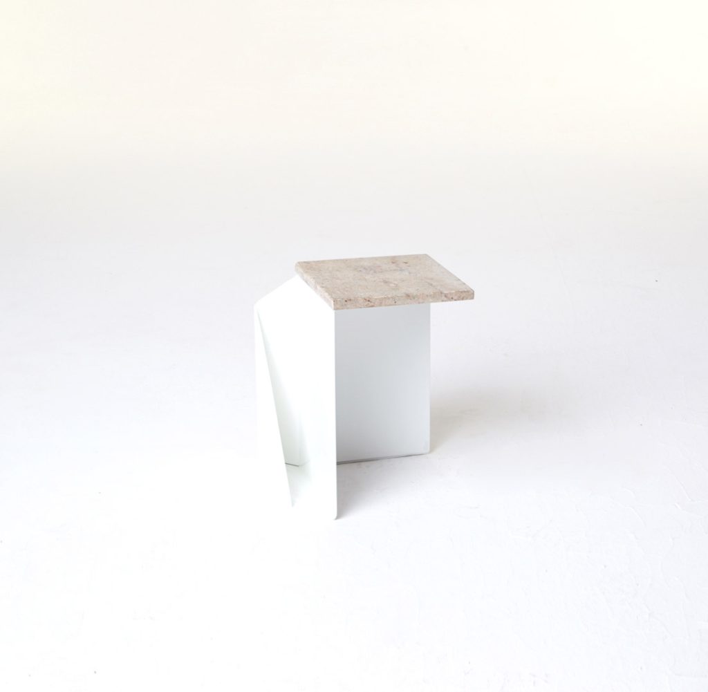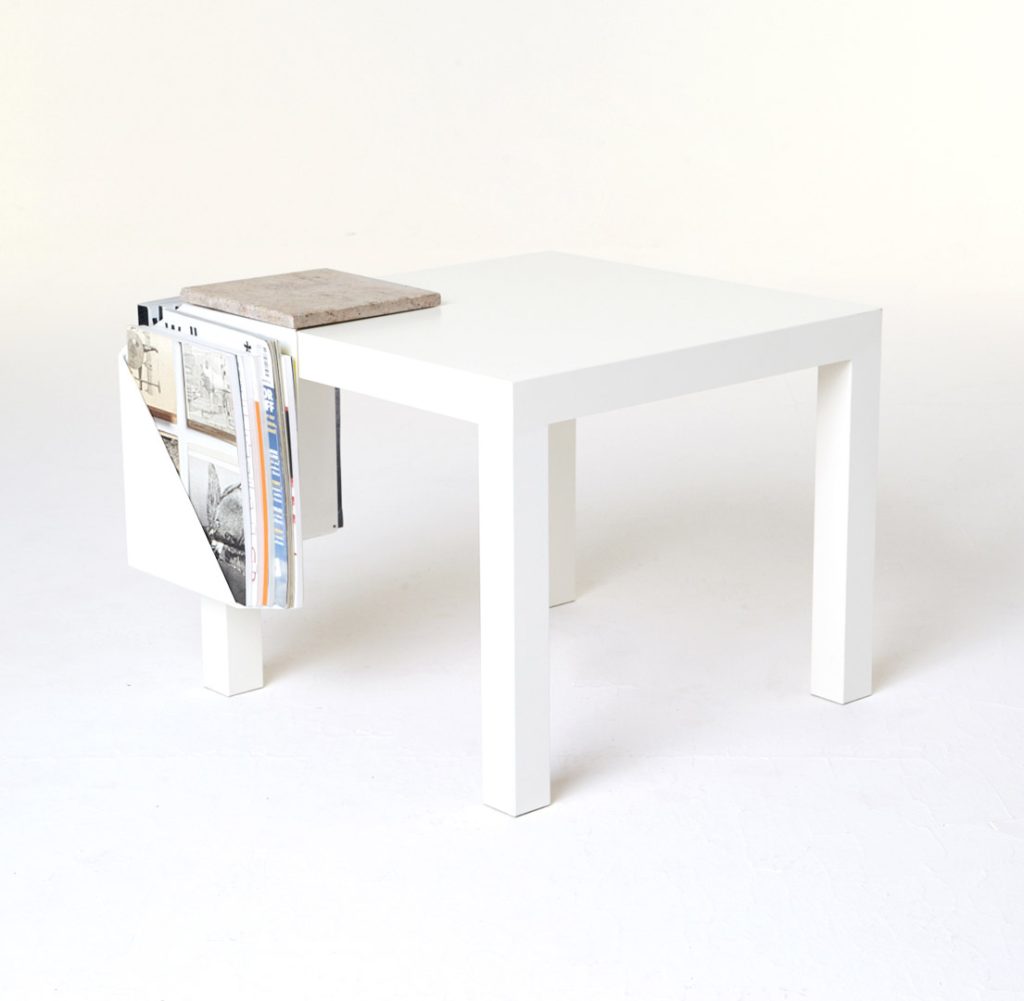 The magazine table is made from thin steel and stone, which can function both as a stand-alone or as an element of a different piece of furniture, thus managing to economise on space. Polypore may also employ the presence of other objects – through attachment – for its own function within a given space. On other occasions, it may constitute an autonomous piece of furniture, occupying its own place within the flat.